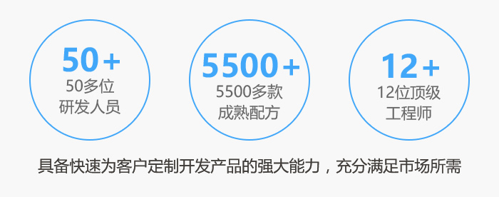• 擁有上千種成熟配方,緊跟市場熱點潮流,不斷研發新品,助您搶占市場商機。